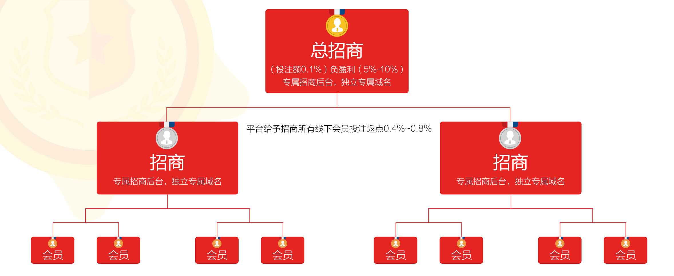 注:成功开通总招商,并发展会员投注即可获得所有线下招商的投注总返点!
